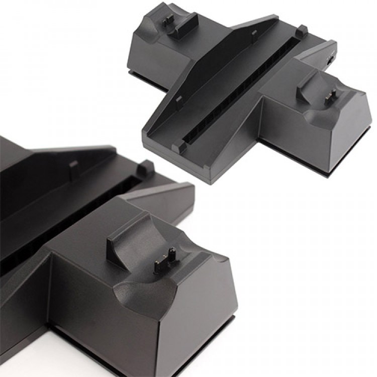 - Dobe PS4 Dual Charging Dock یک استند برای شارژ کنترلرهای Dualshock 4 است و با فن سریع میتواند کنسول شما را نیز خنک کند.