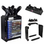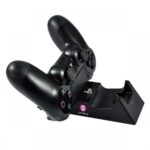 با پایه مخصوص نگهداری بازیهای پلی استیشن 4 میتوانید تا ۱۰ عدد دیسک بلوری را با قاب، با نظم و زیبایی در یک جا قرار دهید. همچنین این پایه دارای یک شارژر دوگانه برای شارژ دوال شاک ۴ است که روی پایه قرار میگیرد. این پایه شارژر با پورت میکرو USB، دوال شاک 4 را شارژ میکند و دارای آداپتور مخصوص برای اتصال مستقیم به منبع برق است. همچنین دو عدد نشانگر LED روی این پایه شارژر تعبیه شده است که مقدار شارژ هر کنترلر را نمایش میدهد.