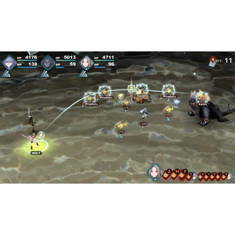 سیستم مبارزات نوبتی با مکانیکهای جدید مانند Dimengeon System که به بازیکنان اجازه میدهد مبارزات تصادفی را ذخیره کرده و همه را یکجا انجام دهند.
