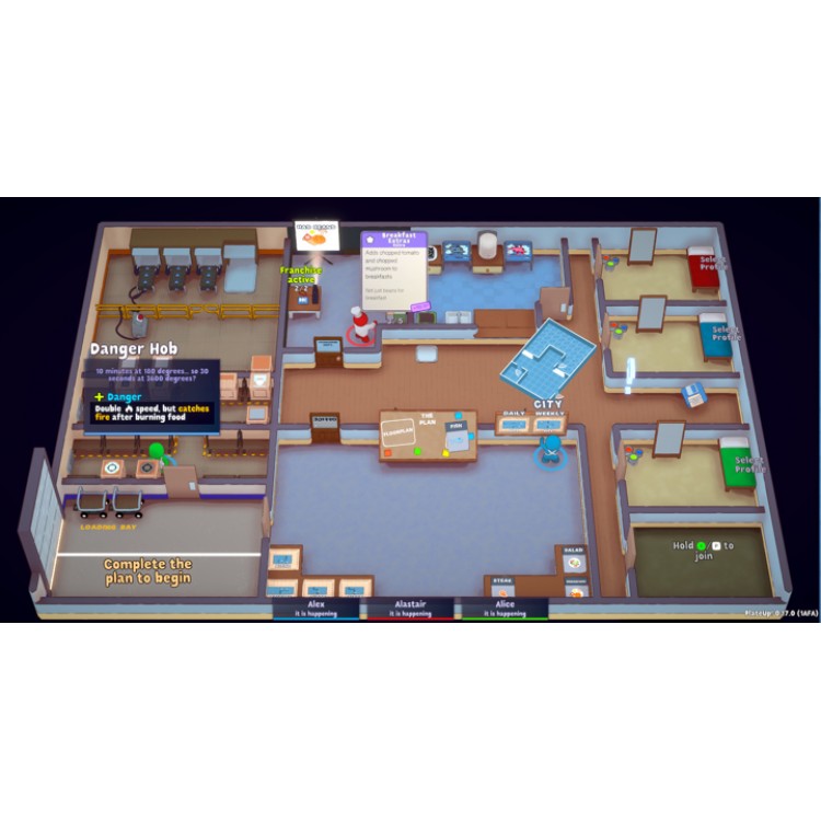 برای تجربهای جذاب از بازی PlateUp میتوانید به صورت کوآپ چهارنفره وارد یک رستوران شده، آن را از صفر طراحی و ساخته و مدیریت کنید. کار شما و دوستانتان انتخاب غذاهای لازم برای پخت، خریداری و چیدمان لوازم آشپزخانه و غذاخوری، اتصال لوازم مختلف به یکدیگر برای ایجاد یک آشپزخانه هوشمند و در نهایت، ارائه غذا به مشتری و سرو آن است که در این مسیر با چالشهای جذابی مختلف روبرو خواهید شد. انتخاب غذاها، پیش غذاها، سسها، دسرها و موارد مختلف به طور کامل برعهده بازیکن است که باید برحسب نیاز، هرکدام را برای جلب رضایت مشتری انتخاب نماید. از انواع سوپها، سالاد، استیک و پایهای خوشمزه تا موارد دیگر، همگی در منوی شما وجود خواهند داشت.