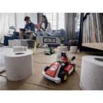 با استفاده از قطعات مقوایی درون باکس، پیست مسابقهای در خانه خود بسازید و با استفاده از یک عدد اکشن فیگور قابل کنترل، در این پیس مسابقه دهید. این فیگور دارای یک دوربین است تا پیست مسابقه را در کنسول نینتندو سوییچ خود، از زاویه دید راننده ببینید. این اکشن فیگور به صورت بیسیم به نینتندو سوییچ وصل میشود و با یک عدد کابل میکرو USB شارژ میشود.