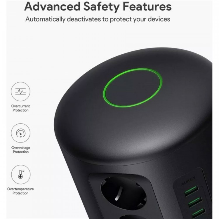 با چند راهی برق Aukey، برق تمامی دستگاههای مورد استفاده خود را یکجا تأمین کنید. این چند راهی و محافظ برق دارای چندین پریز برق با جریان آلترناتیو 12 آمپر و شش عدد پورت USB با جریان 2.4 آمپر است و میتوانید هر وسیلهای را با آن شارژ کنید.
