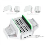 با استفاده از پایه چندکاره Dobe مخصوص ایکس باکس سری اس، شما میتوانید کنسول ایکس باکس سری اس را به صورت عمودی قرار داده و با استفاده از فنهای سریع و بیصدای این پایه، آن را خنک کنید. همچنین، این پایه دارای دو محل نگهداری و شارژ دسته ایکس باکس به همراه دو عدد باتری قابل شارژ برای ایکس باکس سری اس و دو عدد باتری قابل شارژ برای ایکس باکس وان است. این پایه دارای یک دکمه برای روشن و خاموش کردن فن، یک پورت USB برای شارژ و یک پورت USB برای اتصال لوازم جانبی به کنسول است.