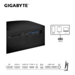 مانیتور Gigabyte M27F از زبان طراحی ساده و مینیمال محصولات گیگابایت پیروی میکند و دارای طراحی ساده اما بسیار زیبایی با رنگ سیاه مات است و پورتهای آن به راحتی در دسترس هستند. این مانیتور دارای دو عدد پورت HDMI 2.0، یک پورت Display، دو عدد پورت USB 3.0، یک عدد پورت USB تایپ C و یک جک 3.5 میلیمتری است.