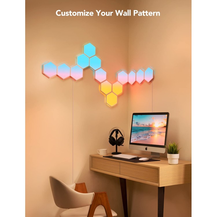 لامپ هوشمند GoVee Glide به شکل شش ضلعی، از 10 پنل LED تشکیل شده است که میتوانید آنها را به هم وصل کنید و شکل مورد نظر خود را بسازید. شما میتوانید این لامپ هوشمند را با دستیارهای صوتی الکسا و گوگل یا اپلیکیشن موبایل GoVee Home مدیریت کنید.