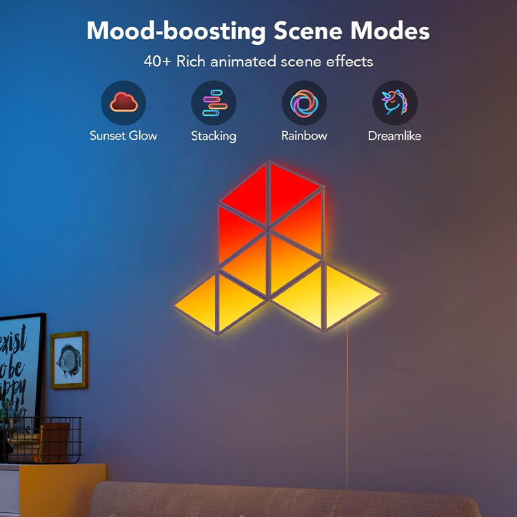 Govee Glide Triangle Light Panels برای ایجاد یک اتمسفر جذاب در اتاق نشیمن، اتاق خواب یا تنظیمات بازی شما ایدهآل است. فضای خود را با رنگهای زنده و اثرات نوری پویا متحول کنید و بگذارید خلاقیت شما با Govee Glide بدرخشد.