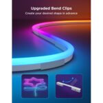 لامپ هوشمند GoVee Neon Rope 2 از سیلیکون نرمتر ولی مقاومتری ساخته شده است و دارای انعطاف بیشتری برای ساخت شکلهای بیشتر است و قابلیت شخصی سازی بیشتری را در اختیار شما قرار میدهد. این لامپ هوشمند همچنین دارای ۱۰ گیره برای خم کردن و ۱۵ گیره برای نصب لامپ به دیوار و سطوح مختلف است.