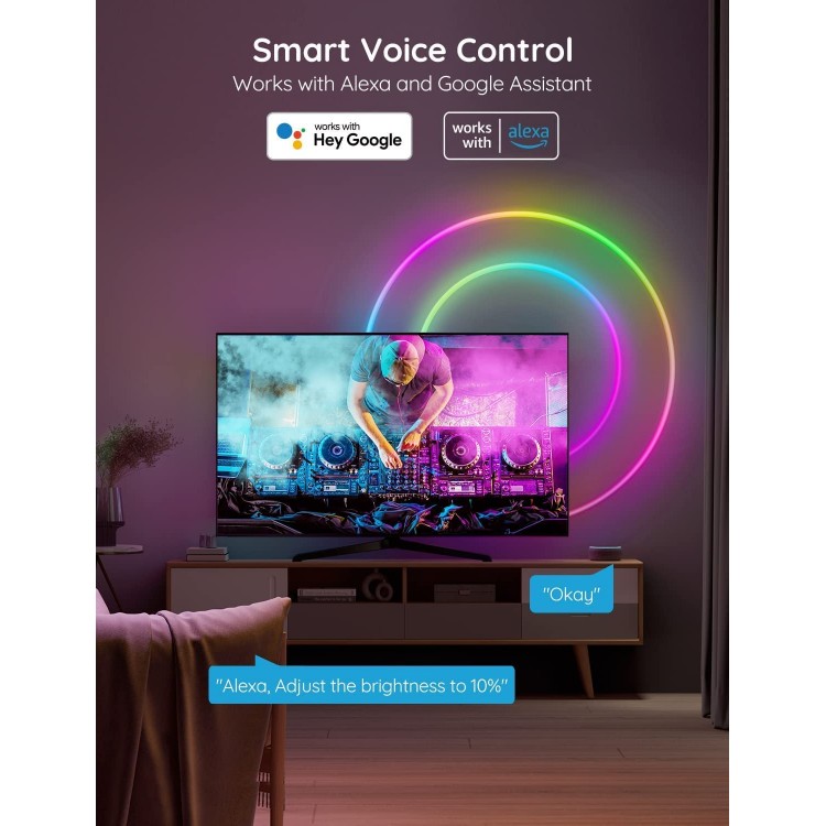 لامپ نواری GoVee با دستیارهای هوشمند گوگل هوم و الکسا سازگار است و میتوانید با فرمانهای صوتی، این لامپ را کنترل کنید.