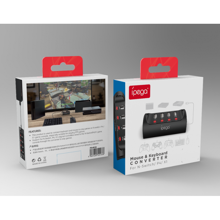 با آداپتور ipega شما میتوانید موس و کیبورد خود را به پلی استیشن 4، ایکس باکس وان یا نینتندو سوییچ خود متصل کنید. کار کردن با این آداپتور بسیار ساده است. کافی است موس و کیبورد خود را به این آداپتور و سپس آداپتور را به کنسول و کنترلر خود متصل کنید. این آداپتور فقط به صورت سیمی قابل استفاده است و برای بازیهای شوتر مناسب است. این آداپتور دارای دکمههای Turbo و Auto برای عملکرد بهتر در بازی است و نیازی به نصب درایور ندارد.