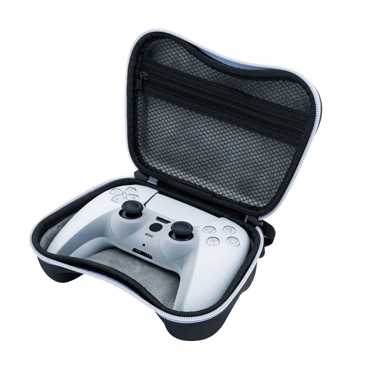 این کیف در برابر ضربه مقاوم است و با زیپ باز و بسته میشود. علاوه بر یک کنترلر دوال سنس، شما میتوانید لوازم جانبی مانند کابل شارژ را در جیب توری داخل این کیف قرار دهید.