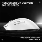 • سنسور HERO 2: مجهز به پیشرفته‌ترین سنسور HERO 2، این ماوس تا 44,000 DPI، 888 IPS و 88G شتاب ارائه می‌دهد و دقت و پاسخگویی بی‌نظیری را فراهم می‌کند.