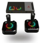 - دو جوی استیک بی سیم 2.4 گیگاهرتز با paddle های یکپارچه شده با 3 تنظیم حساسیت - هر جوی استیک به دو باتری قلمی نیاز دارد.