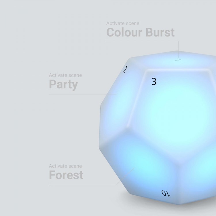 این ریموت دارای ۱۲ وجه است که هر کدام قابل برنامه ریزی هستند. با استفاده از اپلیکیشن موبایل Nanoleaf یا Apple Home، میتوانید به هر وجه عمل خاصی را اختصاص دهید و با استفاده از آنها، تجهیزات هوشمند Nanoleaf را کنترل کنید. البته این ریموت دارای تنظیمات پیش فرض است و میتوانید بدون نیاز به تنظیمات و شخصیسازی نیز فقط با اتصال آن به تجهزیات نورپردازی، از آن استفاده کنید. همچنین، این ریموت دارای حسگر حرکتی است و با چرخاندن آن در جهت و خلاف جهت عقربههای ساعت میتوانید روشنایی لامپهای خود را کنترل کنید.