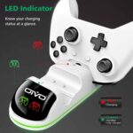 نمایشگر LED این پایه شارژر با رنگ قرمز، شارژ شدن باتری کنترلر را نمایش میدهد. رنگ سبز نیز به معنای کامل شدن شارژ است. مدت زمان شارژ هر باتری 2.5 ساعت است و هر دو باتری به صورت همزمان در 4 ساعت کاملا شارژ میشوند و تا هفت ساعت بدون وقفه میتوانید از آنها استفاده کنید.