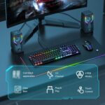 اسپیکر Onikuma G6، یک اسپیکر با کاربری و نصب ساده برای مصارف روزمره است. این اسپیکر دارای یک کابل USB برای روشن شدن نوراهای LED چند رنگ روی اسپیکر و یک کابل 3.5 میلیمتری برای اتصال به خروجی صدا است.