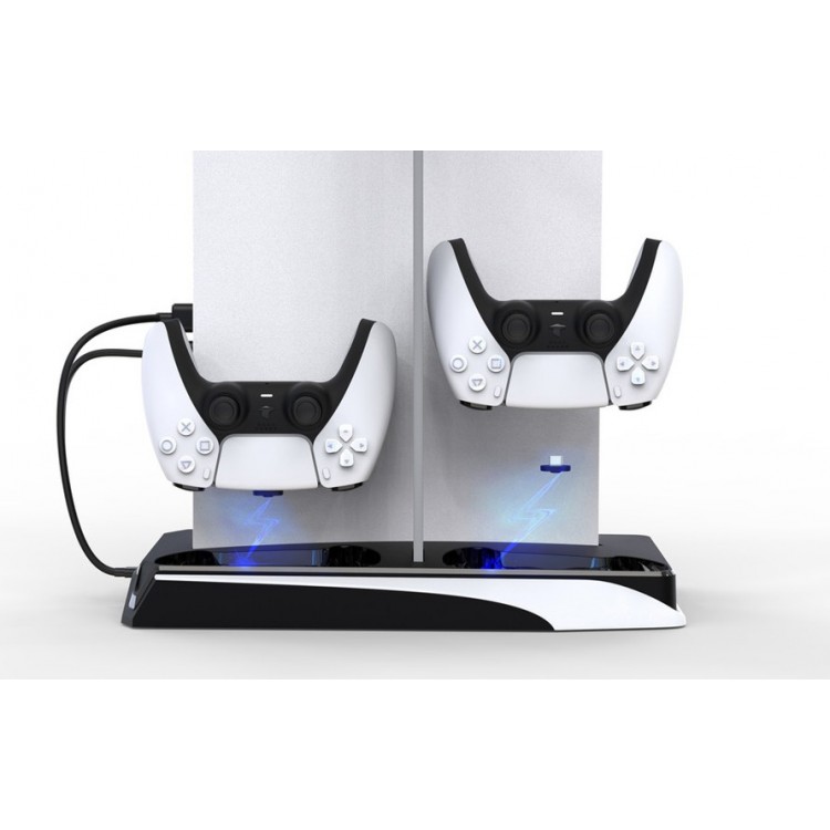 این پایه برای PS5 دیسک خور و دیجیتال مناسب است و دارای فن با سه سرعت برای خنک‌سازی بهتر کنسول است. همچنین، این پایه دارای فضایی مخصوص آویزان کردن هدست است.