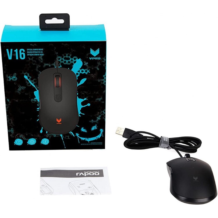 موس گیمینگ Rapoo V16 دارای طراحی بسیار ساده اما زیبا است. این موس دارای پنج دکمه و دقت 2000DPI است و طراحی ارگونومیک آن به گونه‌ای است که به راحتی در دست جا می‌شود و حرکت بسیار روانی دارد.