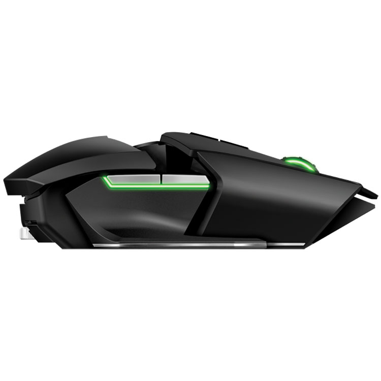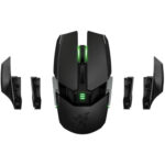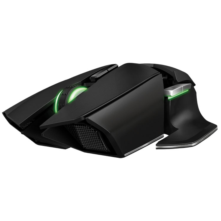 Razer Ouroboros دارای نور سبز رنگ در غلطک اسکرول، نشانگر باتری و قسمت های کناریِ موس است که امضای Razer می باشد. نور سبز یعنی این یک موس Razer است که برای پیروزیِ شما ساخته شده.