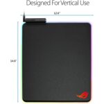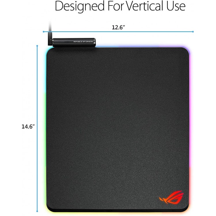 موس پد ROG به تکنولوژی Asus Aura مجهز است. شما با اتصال این موس پد به کامپیوتر میتوانید با نرم افزار Armoury Crate، رنگ ۱۵ LED دور این موس پد را شخصیسازی کنید یا نورپردازی آن را با دیگر محصولات Asus سینک کنید. این موس پد دارای دکمهای برای تنظیمات آسان نورپردازی است و لزومی به استفاده از نرم افزار Armoury Crate ندارید.