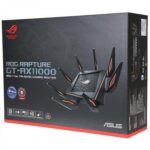 روتر ROG Rapture GT-AX11000 محصولی از کمپانی Asus، یک روتر گیمینگ سه باند مجهز به WiFi 6 و اولین روتر وای فای با پهنای باند ۱۰ گیگابیت است که به پردازنده چهار هستهای، پورت 2.5G، باند DFS، تکنولوژی wtfast، تکنولوژی QoS تطبیقی و تکنولوژی Asus AiMesh مجهز است و با کنسولهای نسل نهم سازگاری کامل دارد.