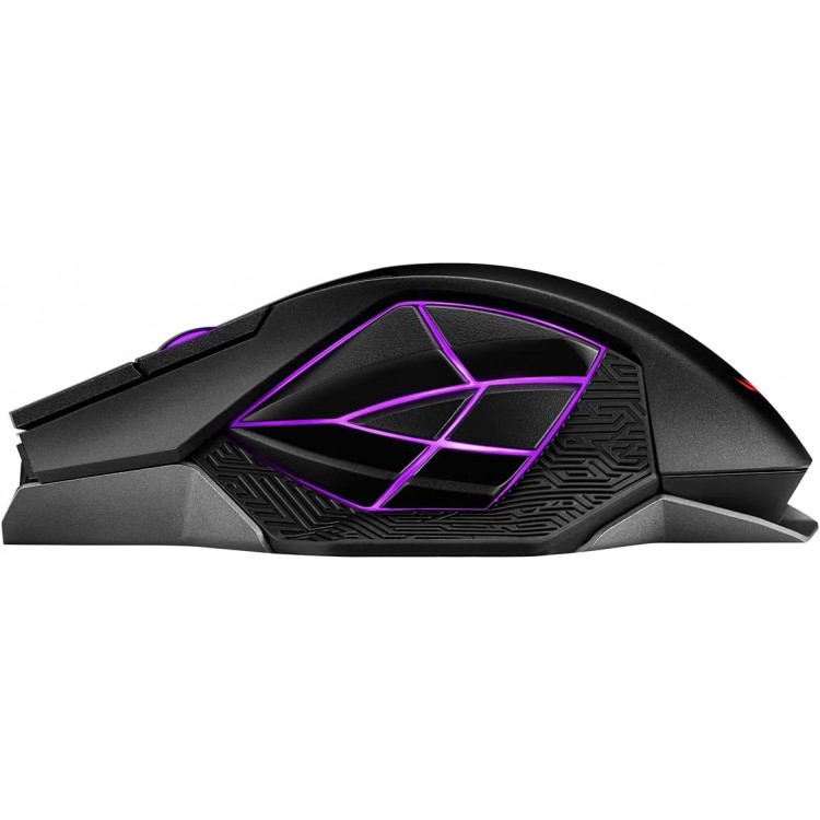این موس دارای مجموعا ۱۲ دکمه است که میتوانید عملکردهای مختلفی را به آنها اختصاص دهید. این موس شش دکمه در پنل سمت چپ دارد که به شکل نماد برند ROG چیده شدهاند و علاوه بر عملکردی عالی برای بازیهای مختلف، ظاهر فوقالعاده جذابی را به موس دادهاند.علاوه بر دکمههای اصلی، این شش دکمه جانبی نیز دارای فیدبک بساوایی هستند و فشردن آنها را در انگشتان خود احساس خواهید کرد.