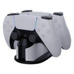 این پک دارای یک عدد پایه شارژ مخصوص دسته PS5 است. با استفاده از این پایه شارژ می‌توانید دو عدد کنترلر دوال سنس را به صورت هم‌زمان در کمتر از چهار ساعت شارژ کنید.