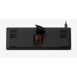 این کیبورد با استفاده از یک کابل USB-C به کامپیوتر شما وصل میشود و دارای پایههایی کوچک برای تنظیم ارتفاع است.