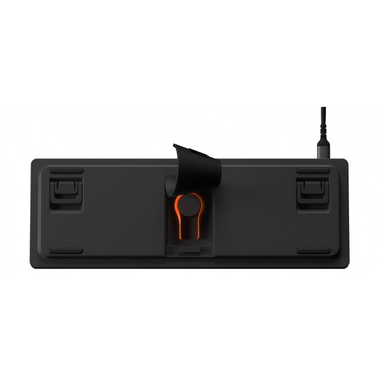 کیبورد SteelSeries Apex Pro Mini دارای یک پایه برای ارتفاع دادن به کیبورد است و با استفاده از یک کابل USB-C قابل جداسازی، به کامپیوتر شما وصل میشود.