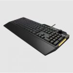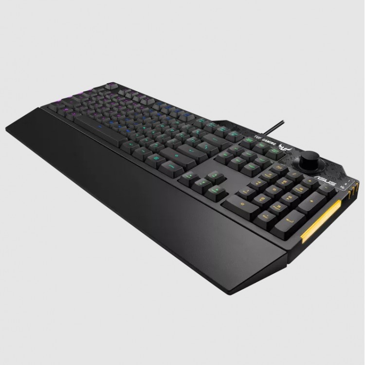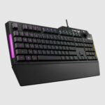 کیبورد TUF K1 نه تنها عملکردی مخصوص گیمرهای حرفهای دارد، بلکه از نظر دوام و مقاومت، یکی از بهترین کیبوردهای دنیا است. این کیبورد دارای سوییچهای بیصدا با لرزشی نسبتا نامحسوس است و بدنه آن در بربار حداکثر ۳۰۰ میلی لیتر مایعات مقاوم است. این کیبورد دارای چراغهای LED قابل شخصیسازی است و دو نوار LED در دو طرف آن، جلوه خاصی به این کیبورد دادهاند. این کیبورد نه تنها برای بازیهای کامپیوتری مناسب است، بلکه دارای پنل و چرخ ابزار مخصوص محتوای صوتی و تصویری است و همچنین، محل قرار گیری مچ دست در این کیبورد، راحتی استفاده از آن را چند برابر میکند و البته قابل جداسازی است.